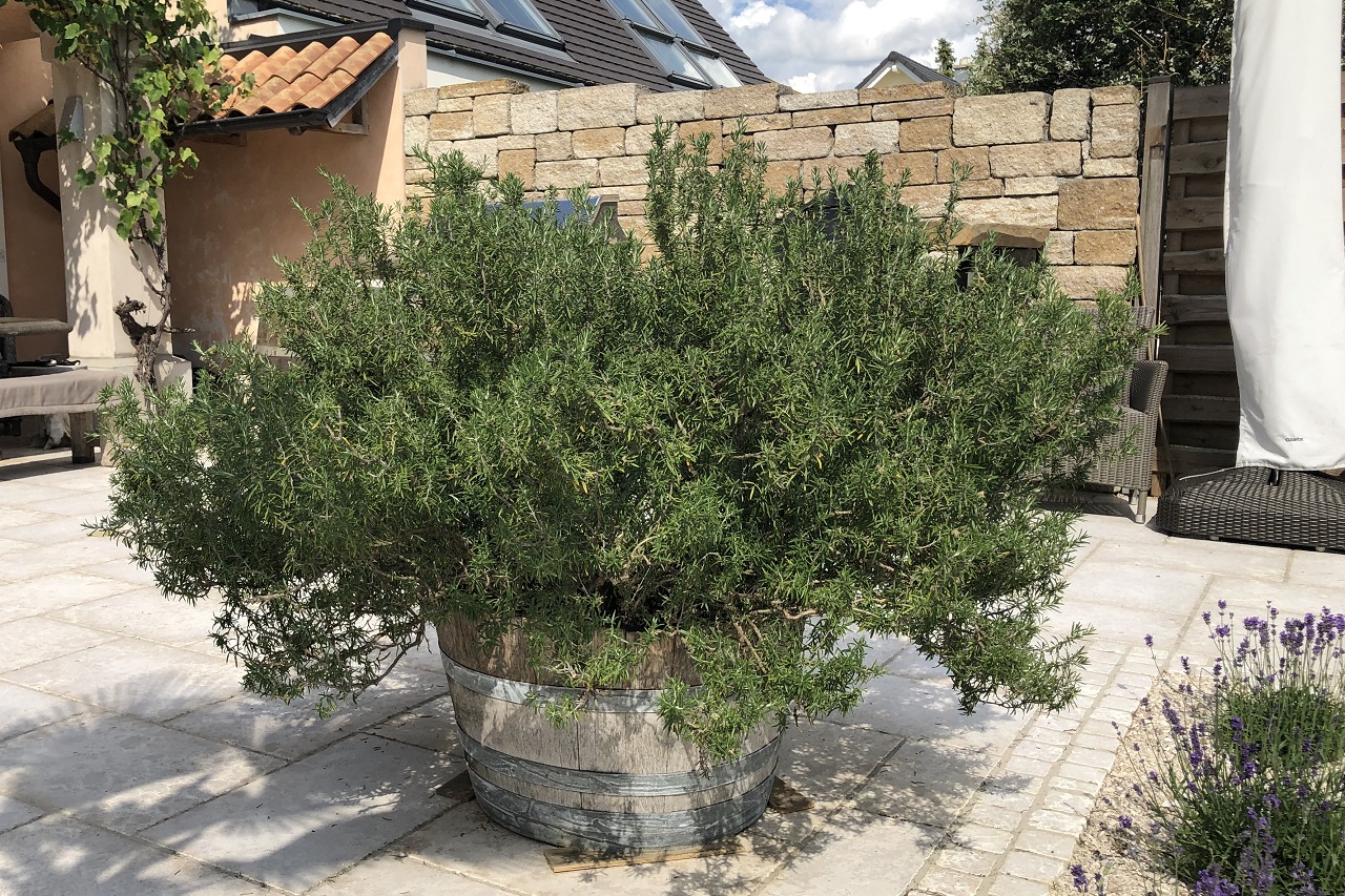 Flachwurzelnde Bäume, Blumenbepflanzung oder Kräuter erfordern eher breitere und niedrigere Bottiche.