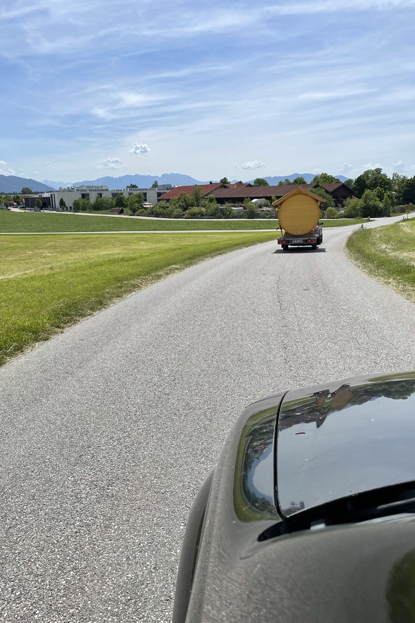 Wir starten mit unserem Konvoi voll bepackt mit unserer Sauna und genug Zubehör im Schlepptau.