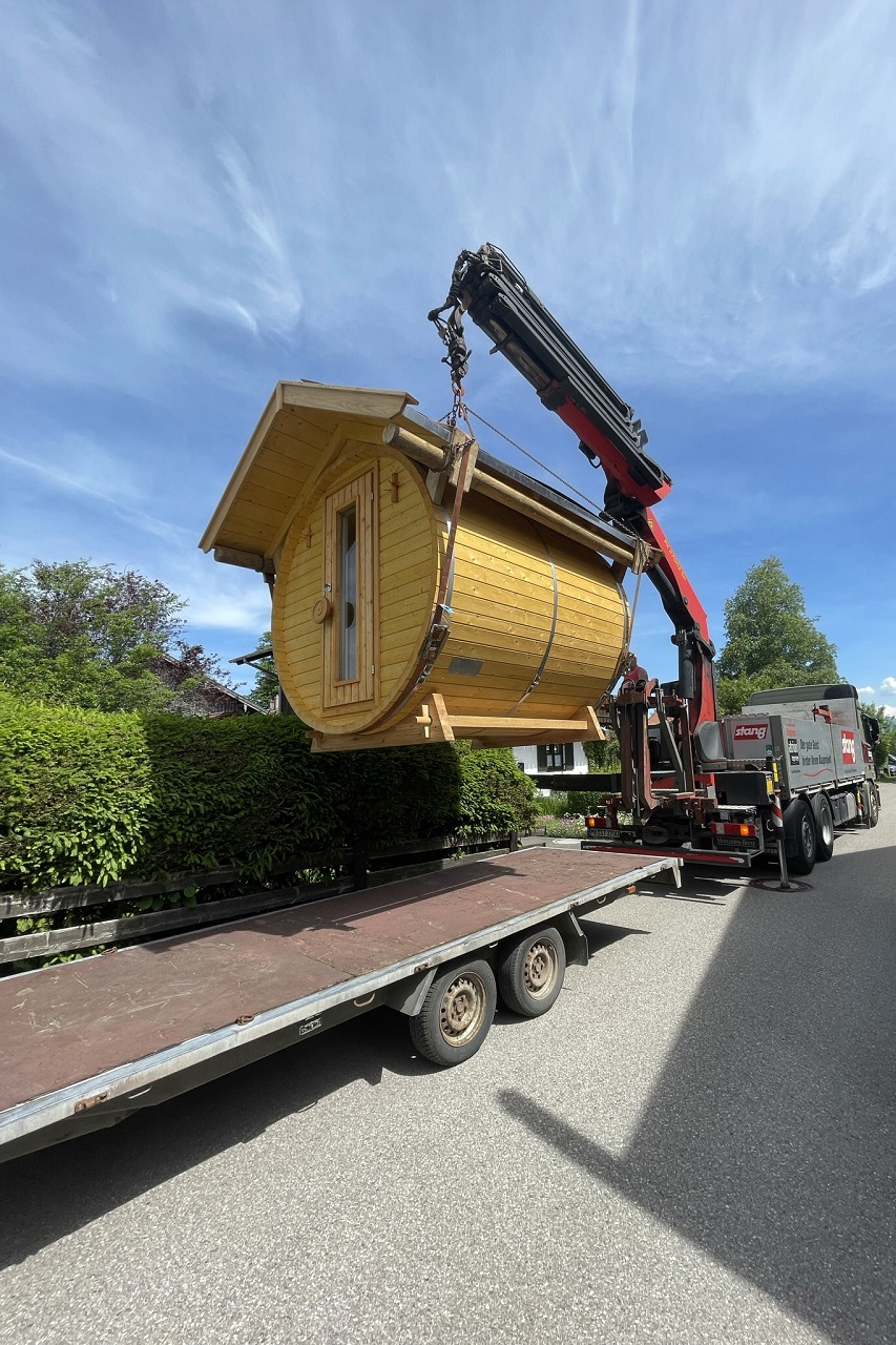 Die Sauna wurde schon vorab fertig zum Kranen vorbereitet.