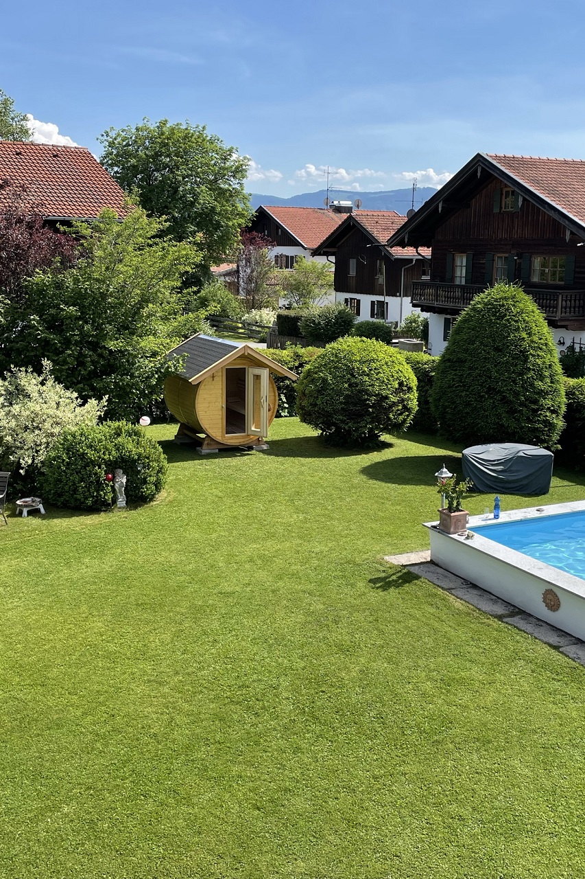 Sie fügt sich nahtlos in den wunderschönen und harmonischen Garten ein und liefert sich nun ein Wetteifern mit dem Pool um den ersten Platz im Garten.