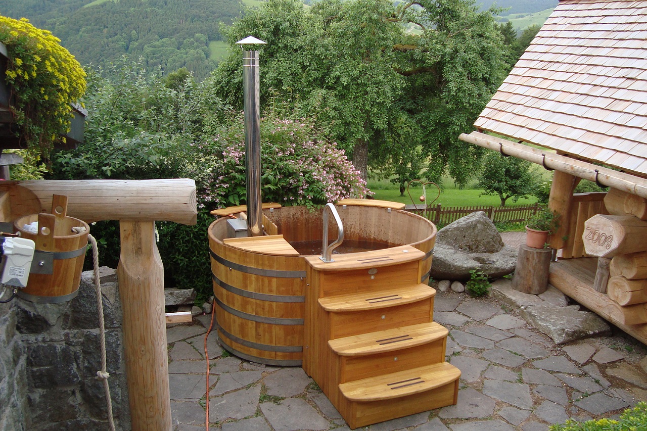 Pünktlich um Mittag steht der Hottub und ist fertig installiert zum Baden.