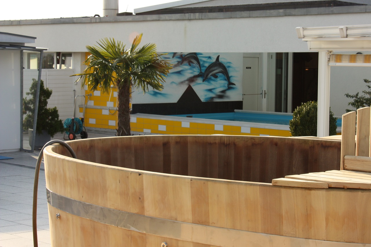 Ein Fitnessstudio in Zürich braucht Ihren bestellten Whirltub auf dem Dach des Gebäudes.